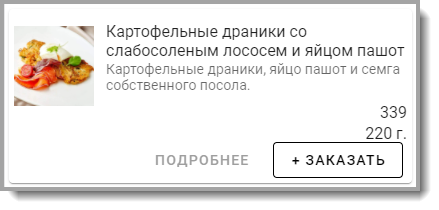 В меню на телефоне выводится одна карточка блюда, но с возможностью выбора вариантов приготовления.