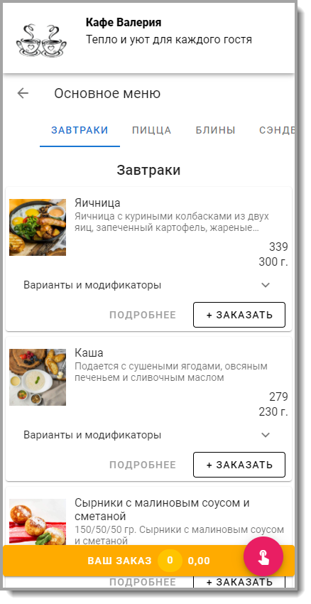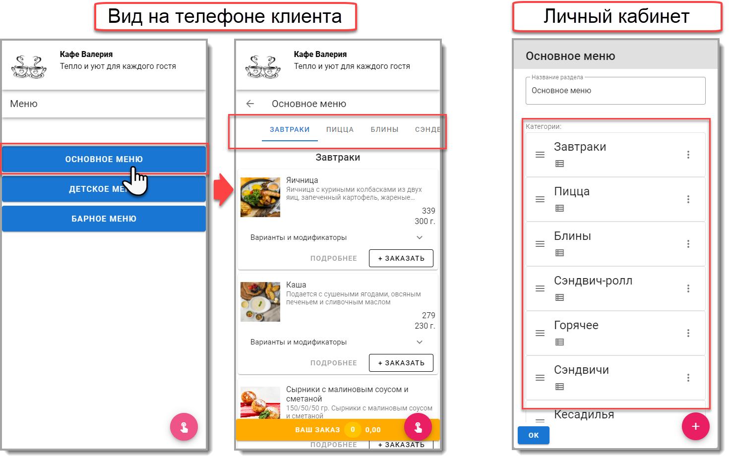 Ниже мы будем рассматривать настройку в контексте меню кафе или ресторана, настройка каталога для магазина происходит аналогичным образом.